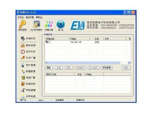 3.管理軟件:完成終端管理、任務管理、權限管理等管理功能,為各語音采集提供數(shù)據(jù)接口服務。提供系統(tǒng)運行編程功能;實時監(jiān)測系統(tǒng)中各個設備的運行狀態(tài)能根據(jù)用戶密碼權限的方式遠程登陸主機,并對主機進行有效管理能通過軟件對系統(tǒng)中的設備進行控制。